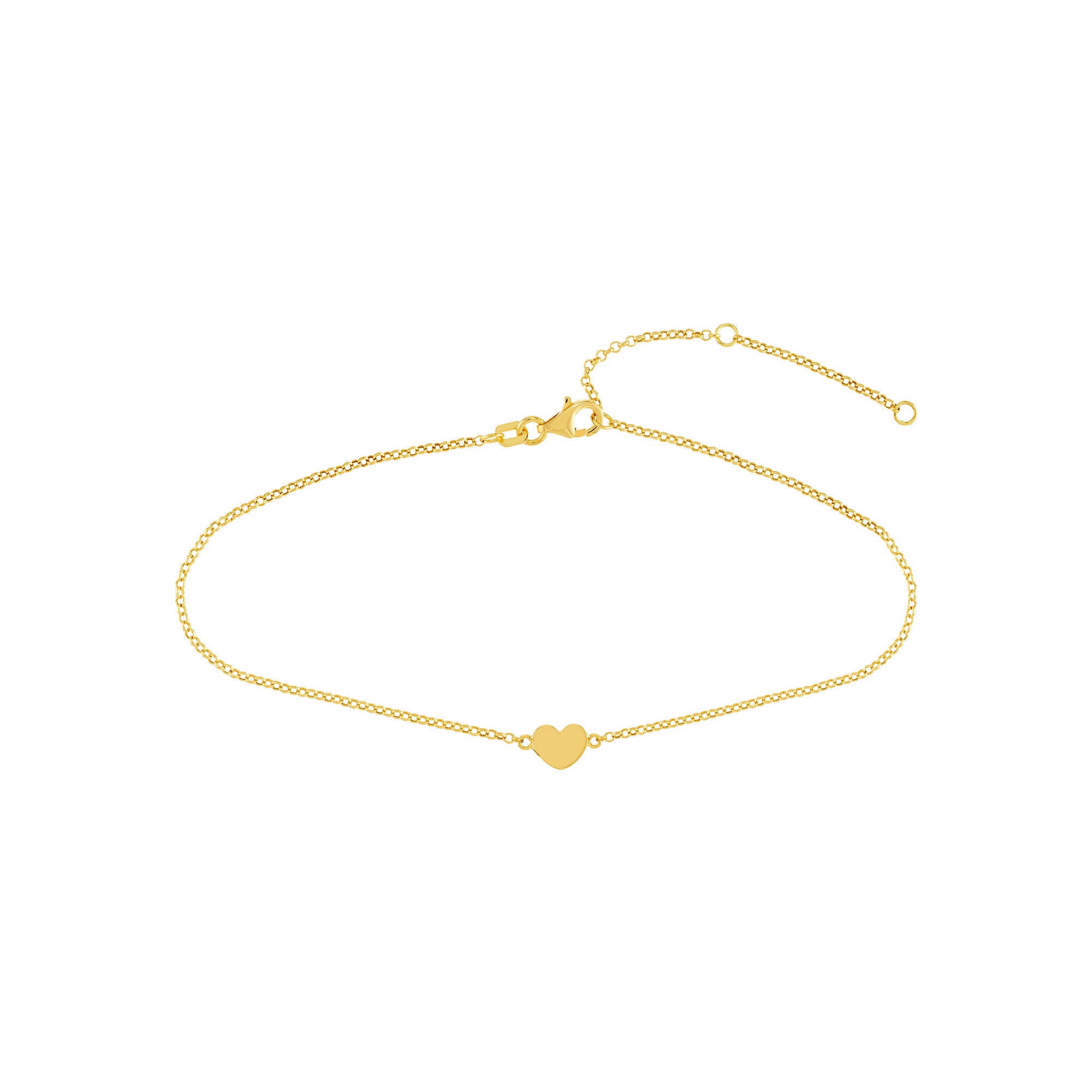 Add a touch of delicate elegance to your ankle with this dainty 14k yellow gold anklet. Featuring a sweet mini heart charm suspended on a fine rolo chain, this piece strikes the perfect balance between subtle and eye-catching. The 10-inch length provides a comfortable fit, while the high-quality yellow gold construction ensures lasting beauty and durability. The classic rolo chain design offers both strength and flexibility, making it ideal for everyday wear. This anklet can be dressed up or down, making it a versatile addition to your jewelry collection. The simple yet meaningful heart motif makes it an ideal gift for someone special or a perfect self-indulgence. A secure clasp ensures your anklet stays in place while you move about your day. The polished finish catches the light beautifully, drawing subtle attention to your ankle.