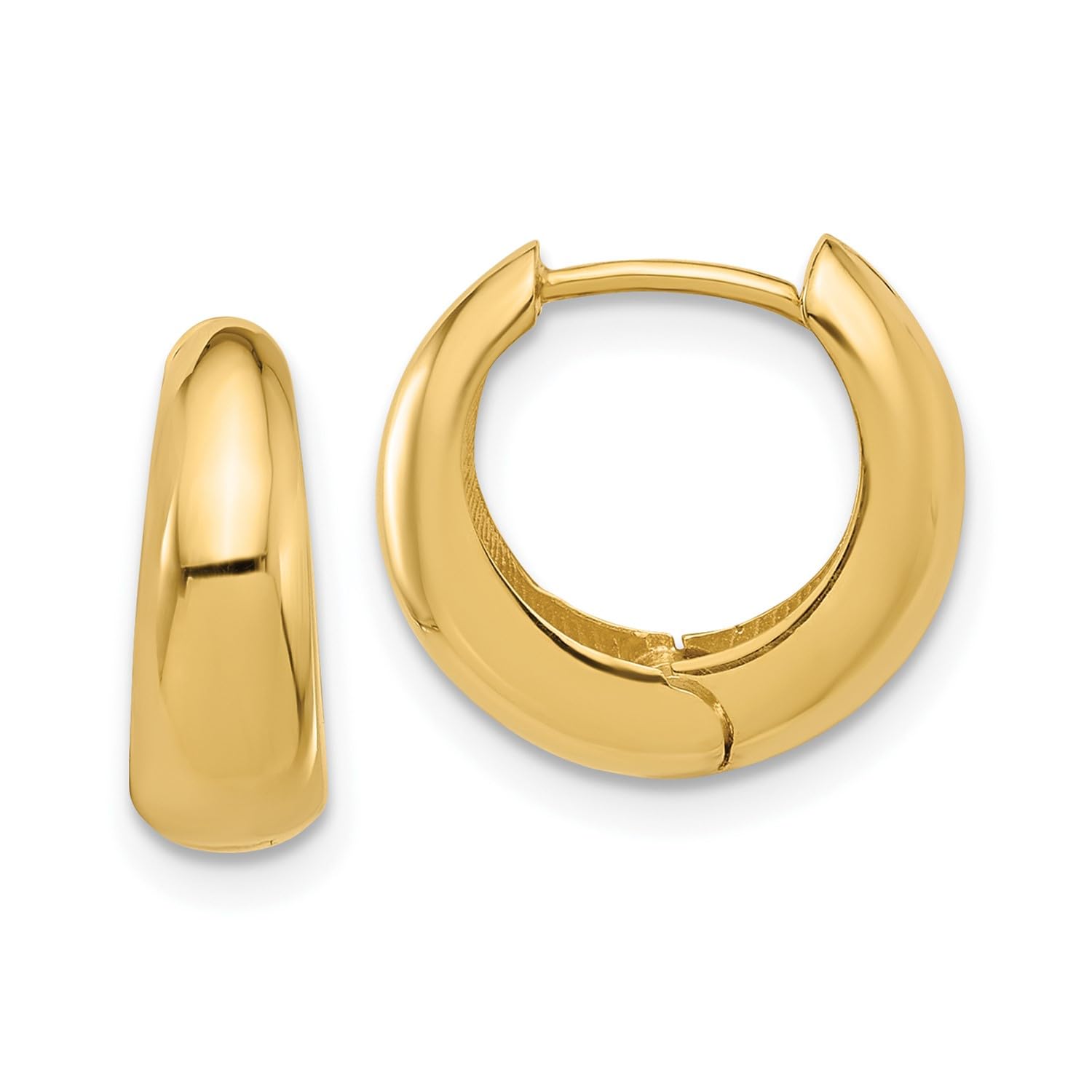 10K Yellow Gold High Polished Hinged Huggie Hoop Earrings, 12mm