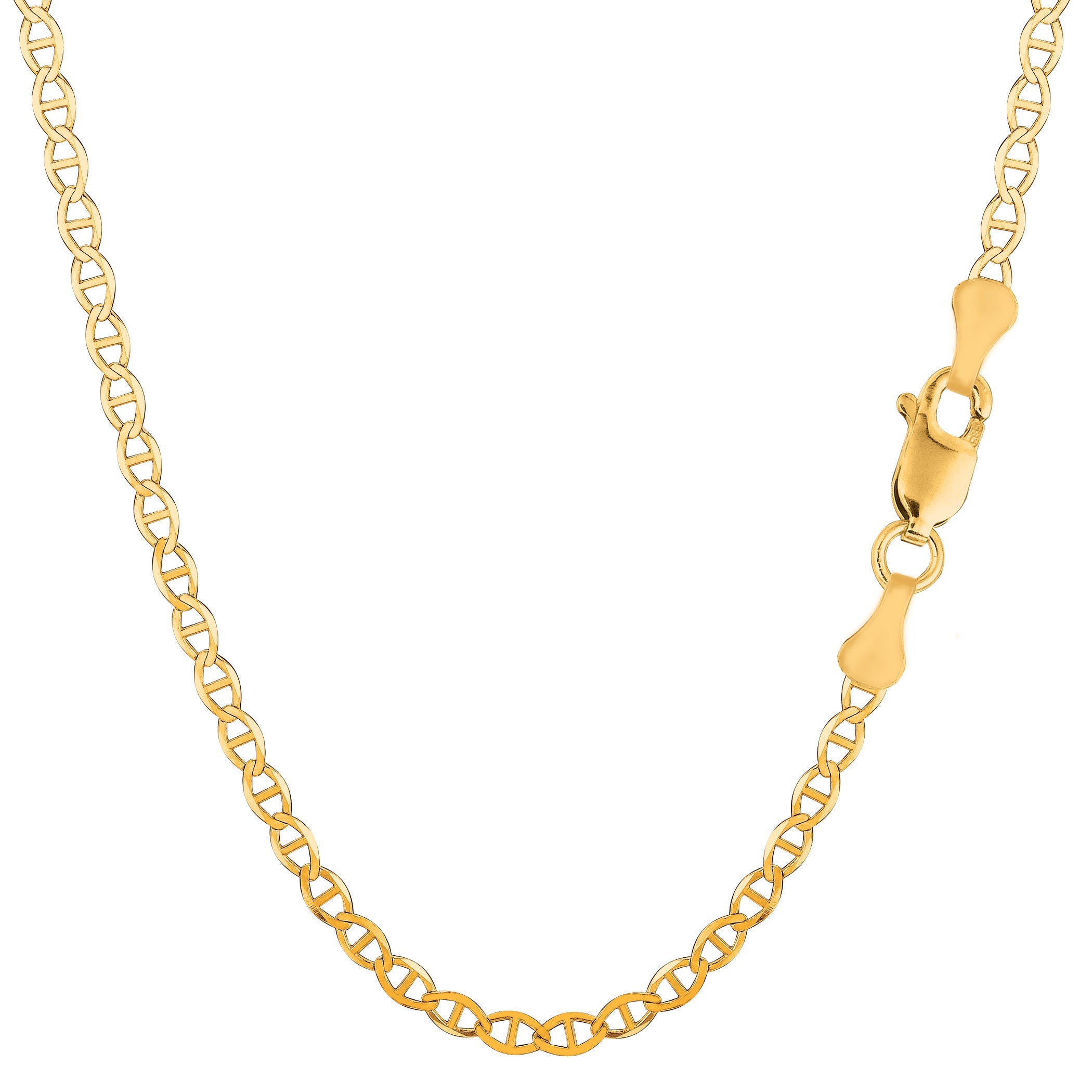 This 10K yellow gold Mariner link chain offers a modern necklace look. At a 3.2 mm thickness this chain is available in an 16" 18" 20" 22" and 24" inch length. Perfect for pendants and can also be worn alone. Includes a lobster clasp to uphold strength and comfort.