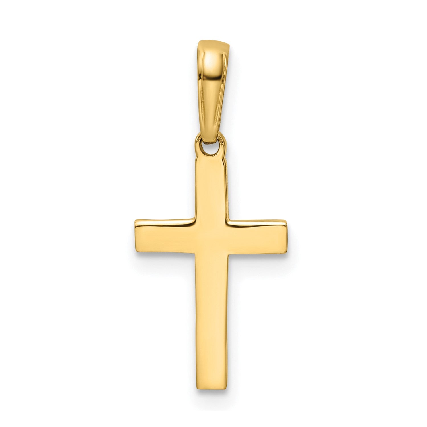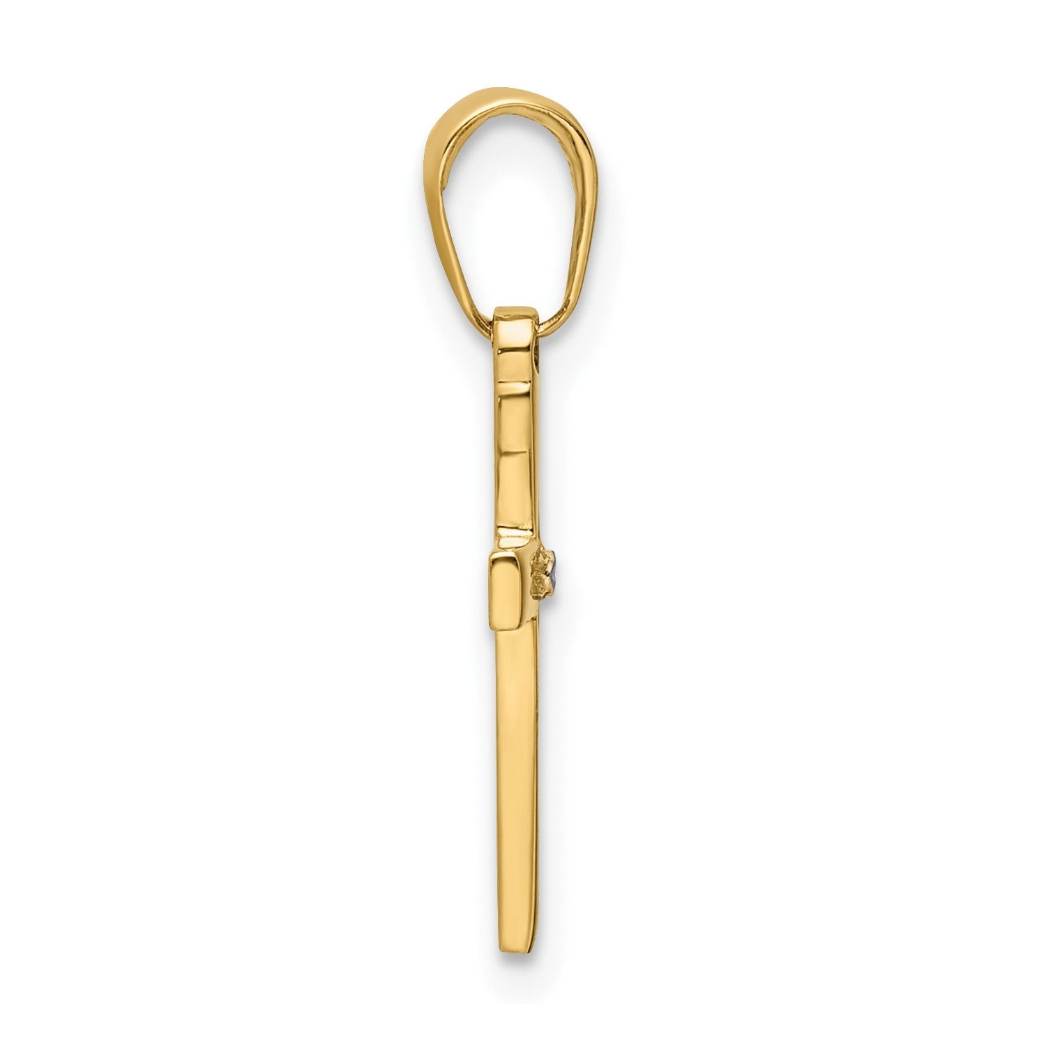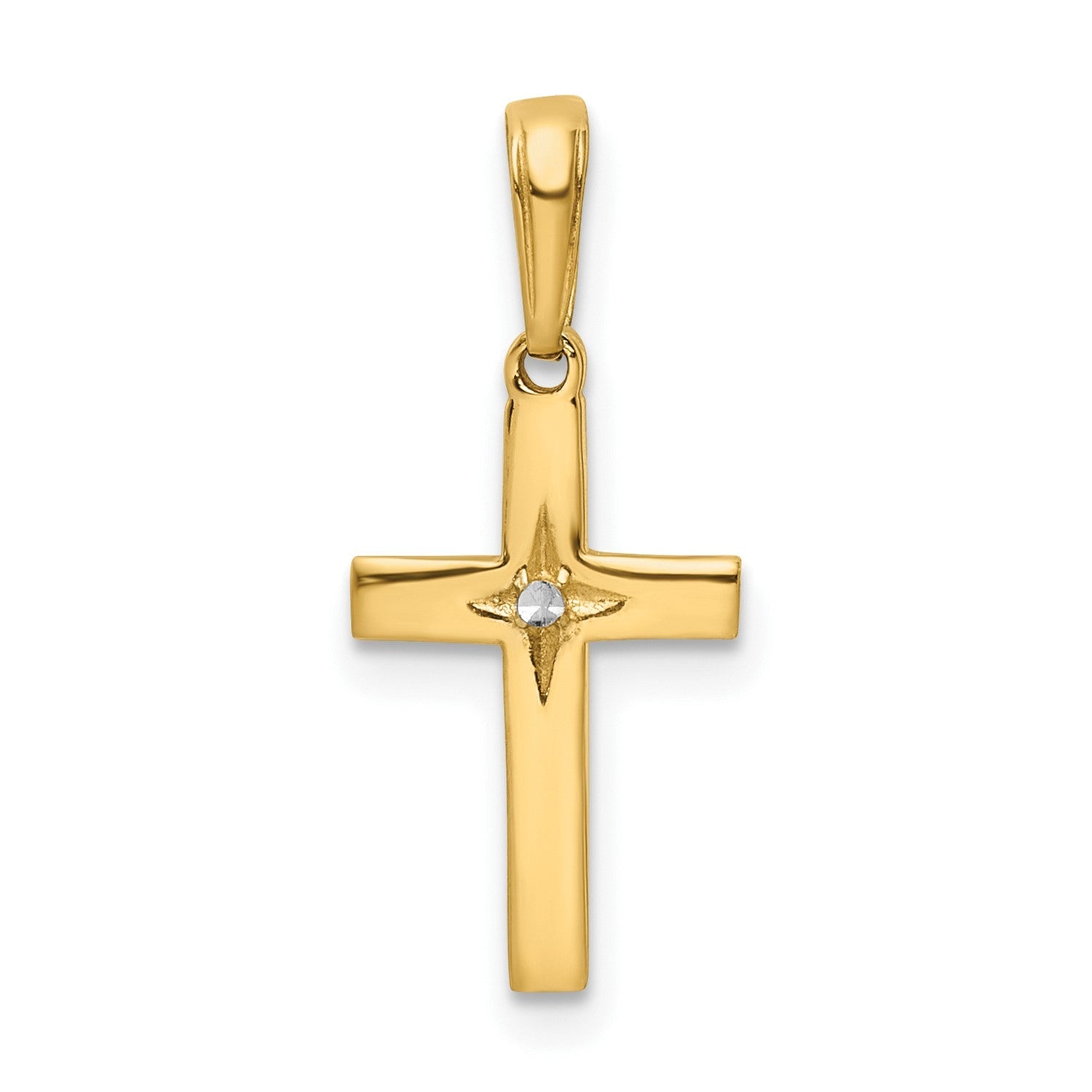 Elevate your faith and style with this exquisite 14k real yellow gold and rhodium double cross pendant charm. Measuring 22x10mm (approximately 0.87x0.39 inches), this pendant is a timeless symbol of devotion and spirituality. Crafted with meticulous attention to detail, the pendant features a round brilliant cut center diamond that adds a touch of radiance and elegance. Whether worn as a standalone piece or as part of a necklace, this pendant charm is a stunning representation of your beliefs. Its versatile design allows you to incorporate it seamlessly into your everyday look or reserve it for special occasions. Treat yourself or someone special to this beautiful piece of fine jewelry that will undoubtedly become a cherished possession.