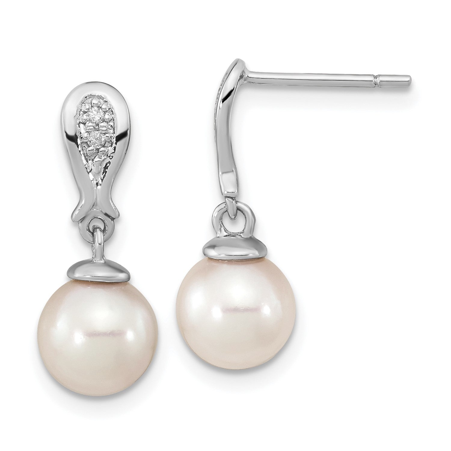 Elevate your style with these exquisite freshwater pearl dangle earrings. Crafted from 14k real white gold, these earrings feature round, lustrous pearls and white diamonds totaling 0.03 ct ?ÿsuspended beautifully, adding a touch of elegance to any ensemble. The 0.75 Inch length provides a graceful movement that catches the eye. Whether for a special occasion or everyday wear, these pearl earrings are a timeless accessory that effortlessly complements your look. Treat yourself or someone special to the beauty and sophistication of these genuine pearl dangle earrings.