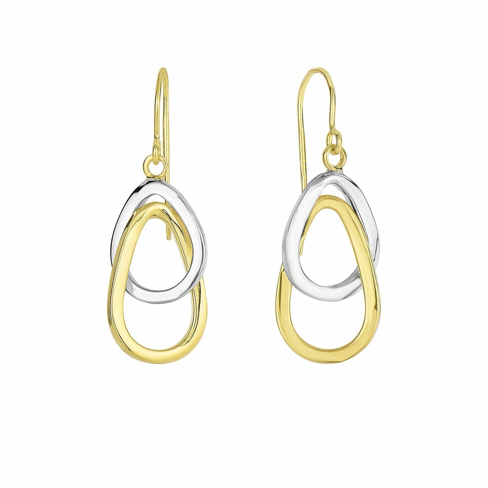 14K Yellow And White Gold Hanging Tear Drop Earrings