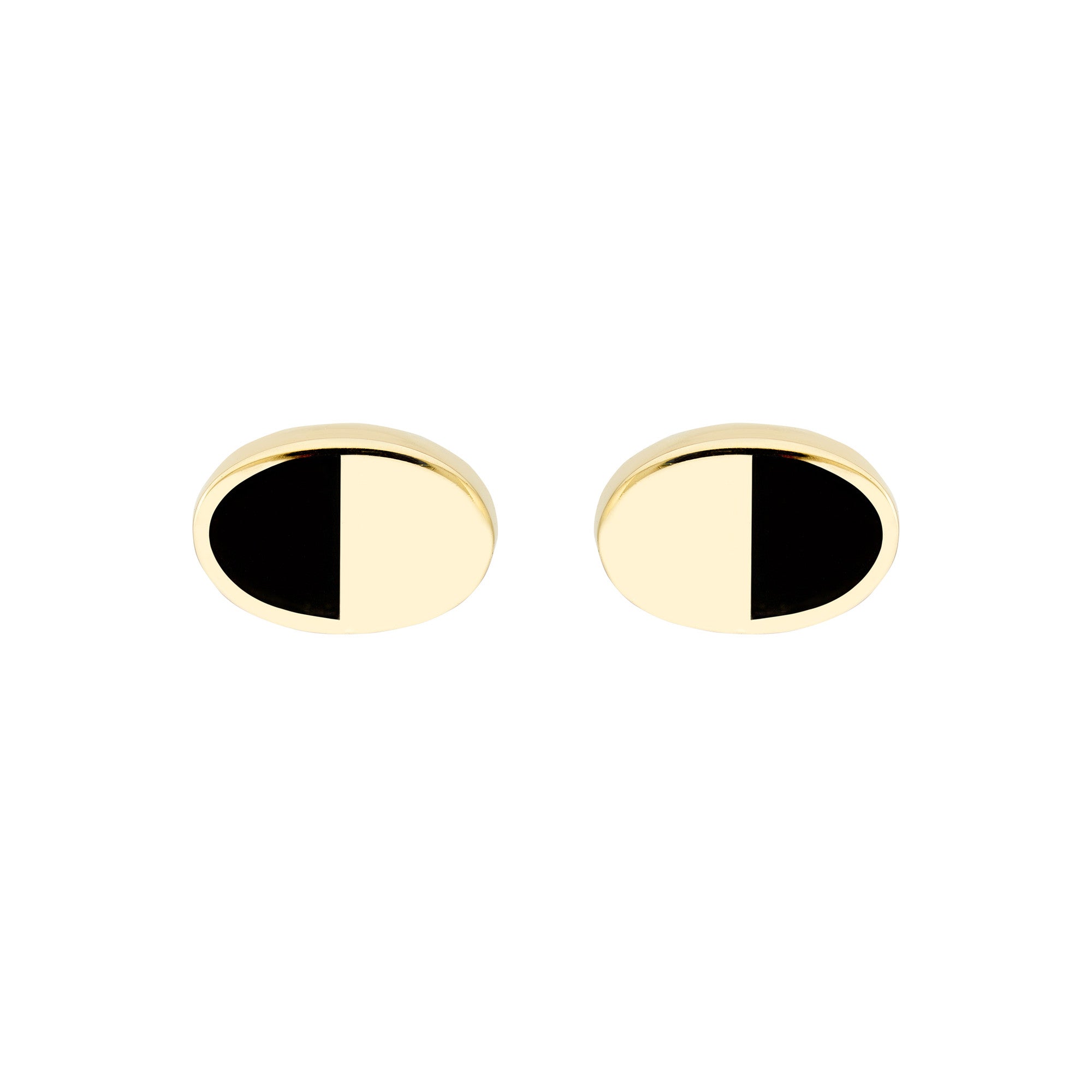 DESIGN: Elegant oval-shaped stud earrings crafted in lustrous 14k yellow gold with black enamel accents for a sophisticated look. The weight of the earrings is at 1.1 grams