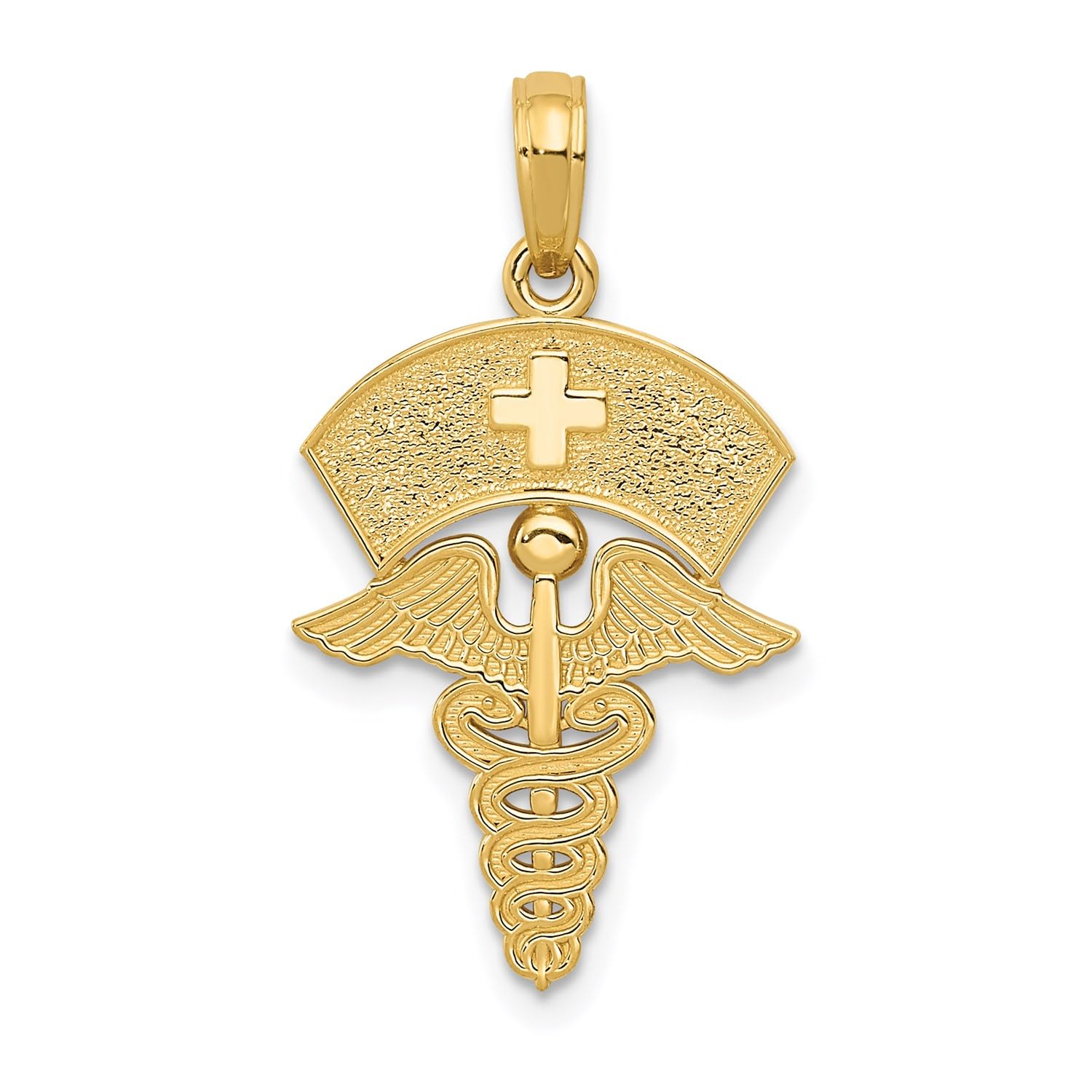 Symbolizing the noble medical profession, this 14k yellow gold caduceus pendant is a timeless accessory for healthcare professionals. The intricate design features a staff entwined with two serpents, topped by wings and a cross, embodying the ancient Greek symbol of healing and medicine. Meticulously crafted with attention to detail, this pendant measures 30x15mm, making a subtle yet striking statement.