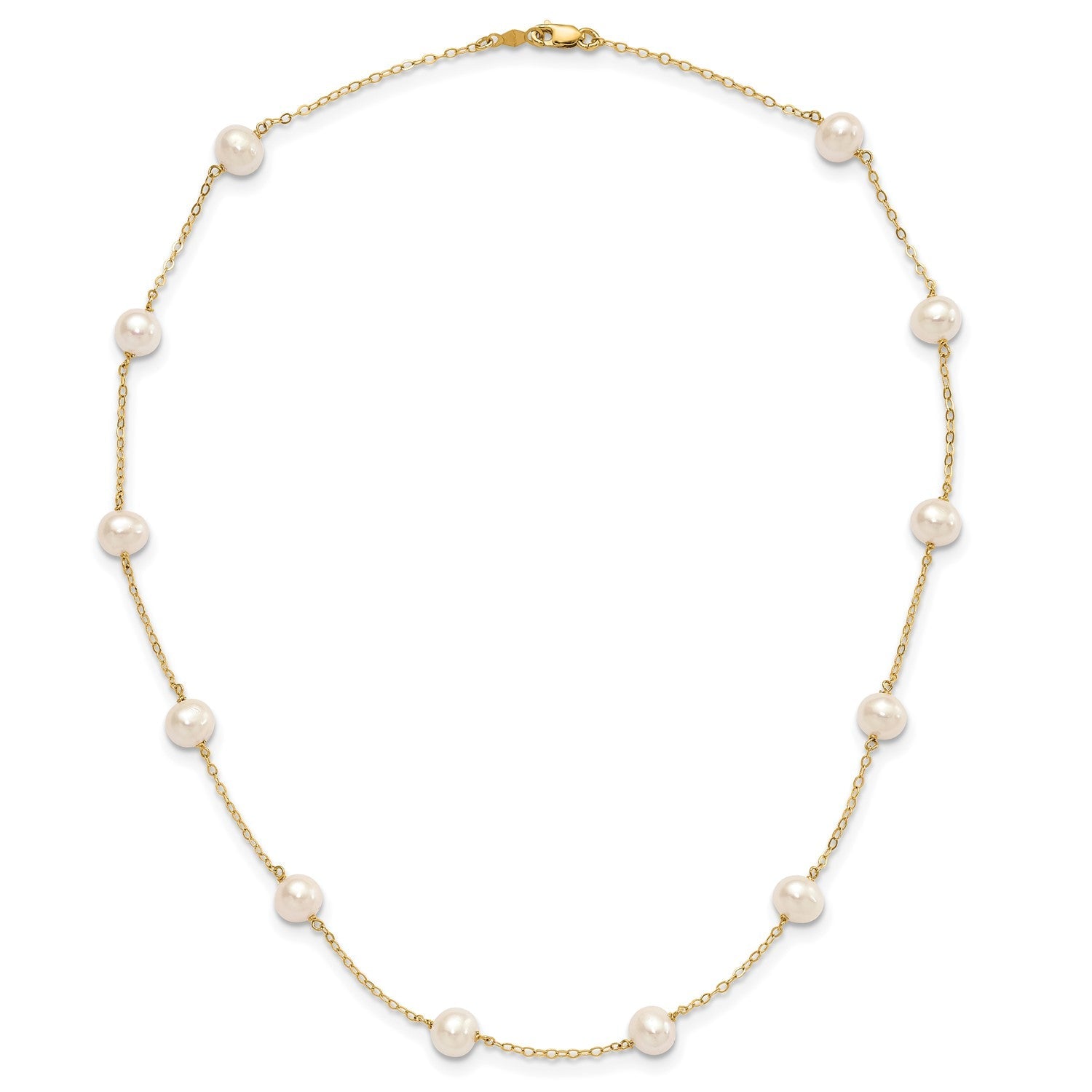 Elevate your style with these exquisite 14k real yellow gold 6mm white near round freshwater cultured pearl necklace in 16" length. Crafted with meticulous attention to detail, these earrings feature luminous pearls that catch the light beautifully, adding a touch of elegance to any ensemble. The lustrous 14k yellow gold setting provides a timeless and sophisticated look, making this necklace a versatile accessory for both casual and formal occasions. Whether you're dressing up for a special event or simply want to add a touch of luxury to your everyday look, these pearl stud earrings are a must-have addition to your jewelry collection. Treat yourself or surprise a loved one with the gift of timeless beauty.