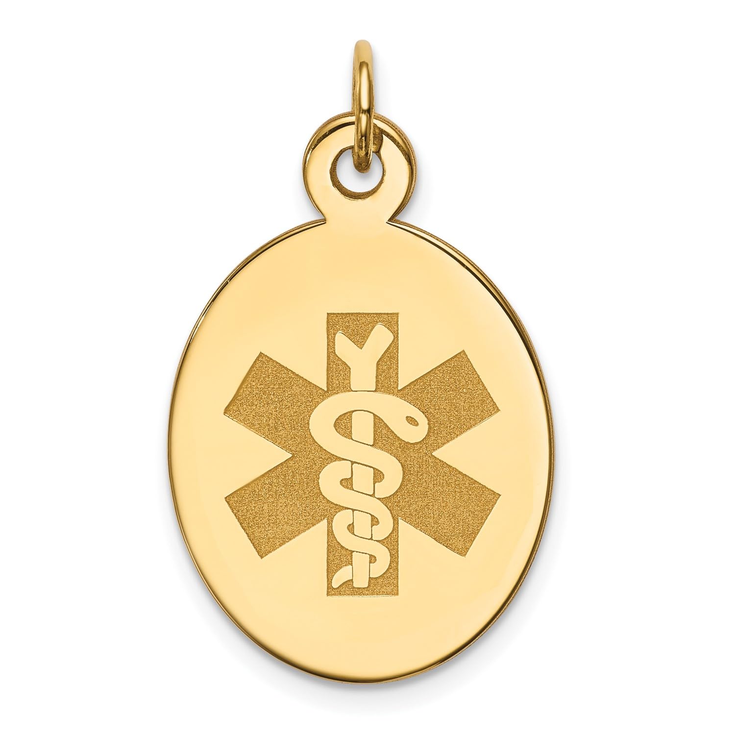 14k Yellow Gold Medical Alert Oval Pendant, 26x16mm