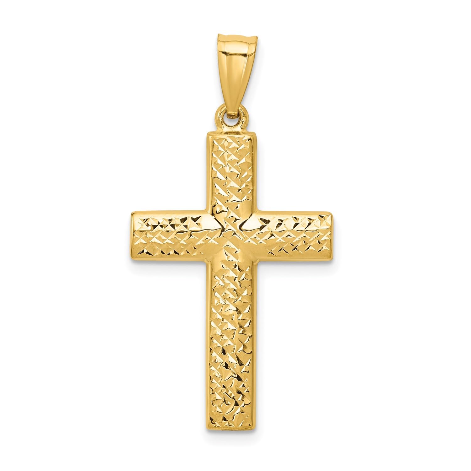 14K Yellow Gold Reversible Textured High Polished Cross Pendant, 36x18mm