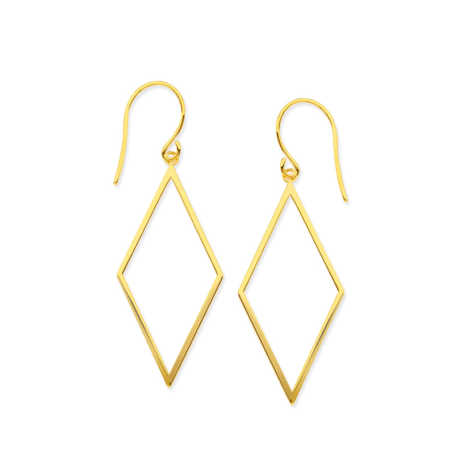 Add a classy touch to your ensemble when you wear these 14k yellow gold drop triangle element earrings. Featuring a french wire of high polished gold, these drop earrings have a length of 50mm and weight 1.6 grams. These French wire back earrings come in a elegant gift box.